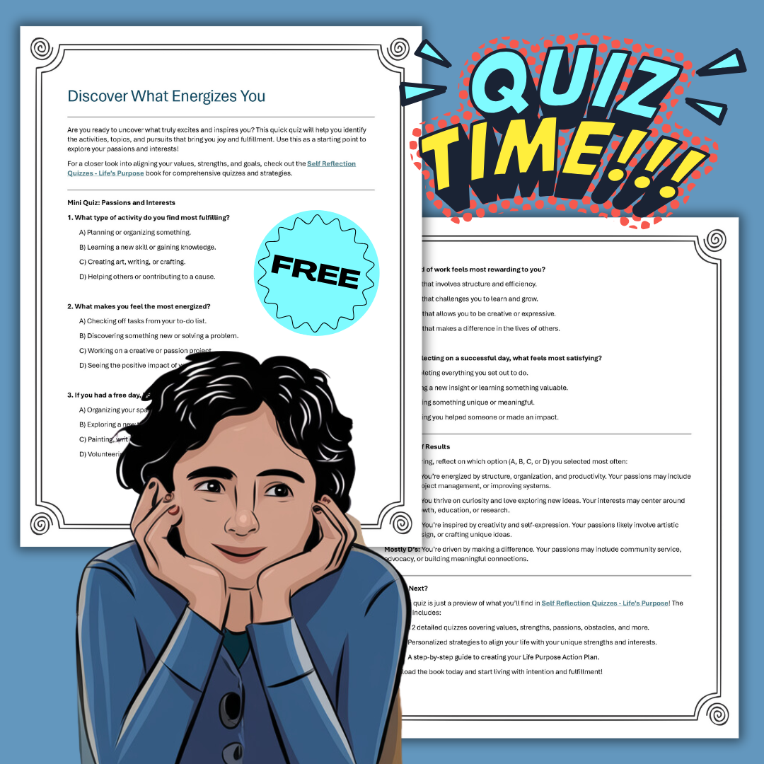 Ready to start discovering your passions? Download our free 5-question quiz to help you identify the activities and ideas that bring you joy. This quick quiz is designed to help you reflect on what excites you most and start aligning your life with your unique interests. Simply sign up below to get your free printable quiz and begin your journey of self-discovery.